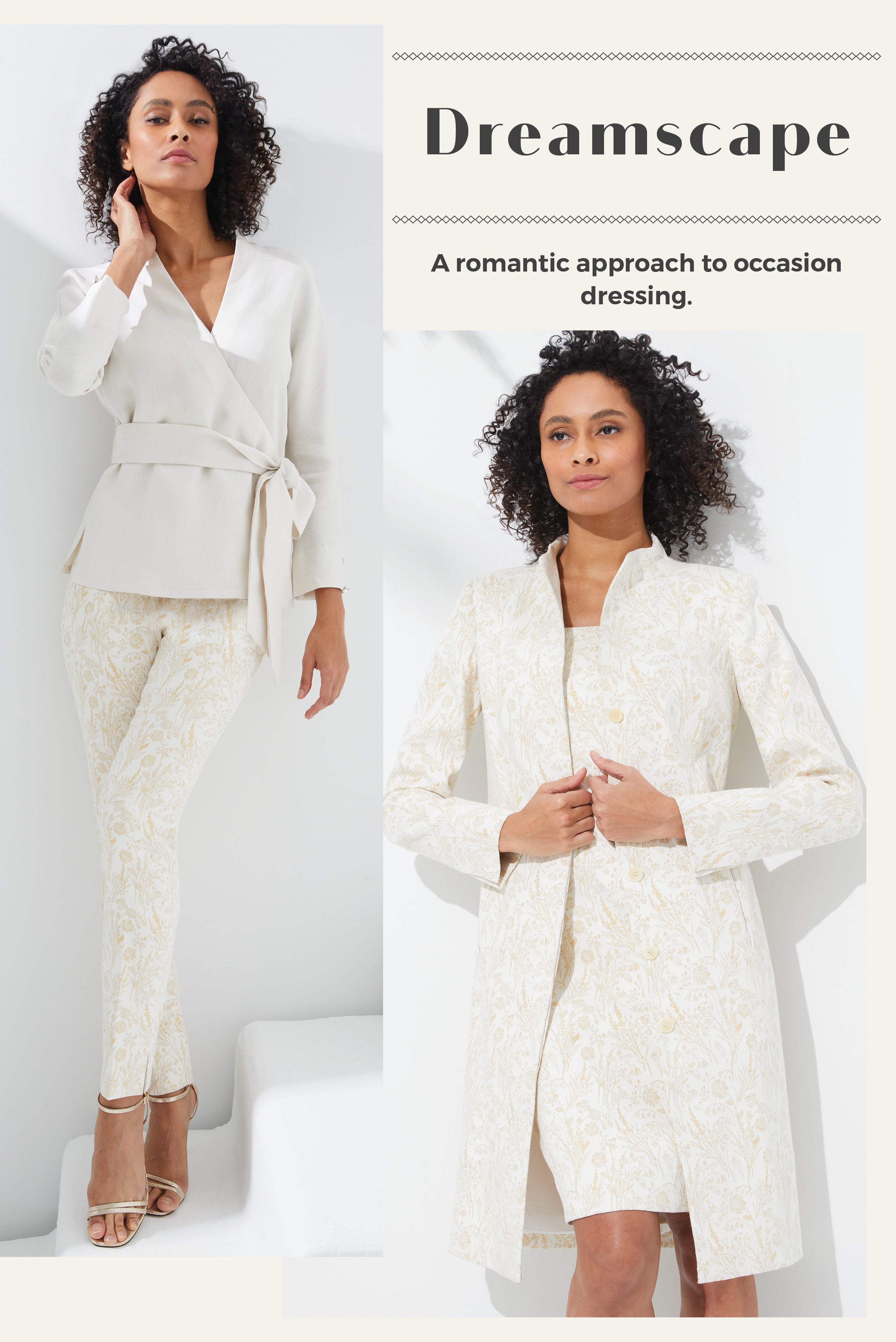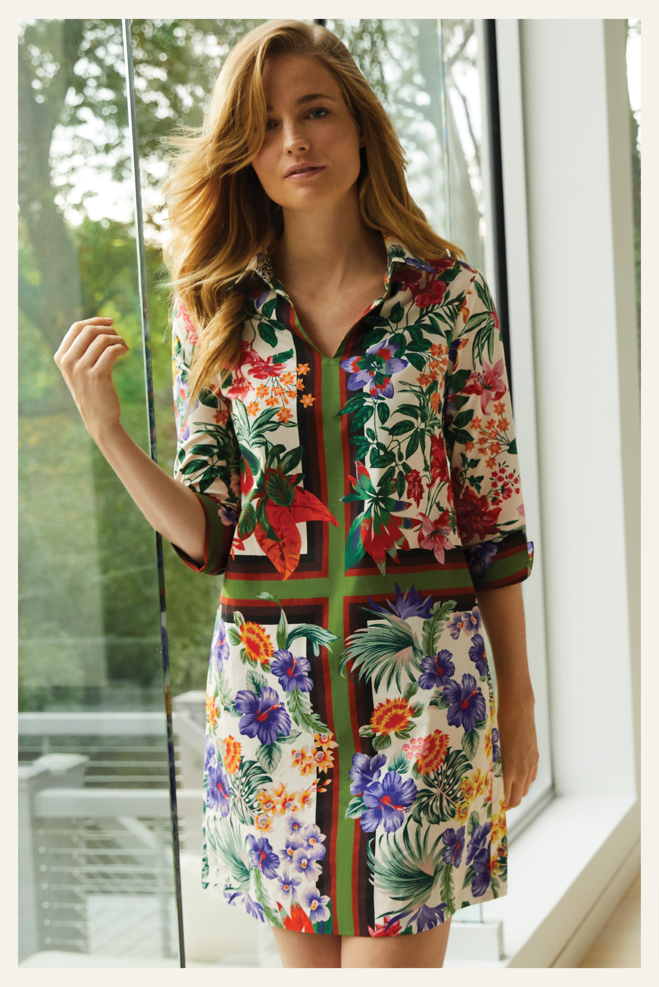 Imagine a spring fashion line that fuses harmoniously the wild, untamed beauty of nature and the structured elegance of meticulously designed formal gardens. The Trellis Gardens collection draws inspiration from the paradoxical relationship between the lush, unruly exuberance of nature and the controlled precision of cultivated green spaces, such as espaliers, parterres, tree boxes, and topiary. All the pieces mirror this dichotomy with a range of patterns and textures. Floral foulard prints capture the riotous bloom of spring, while gridded and floral laces add an element of cultivated refinement, akin to the geometric precision of a well-pruned hedge. Striped florals and plaids convey the sense of order and structure found in formal garden pathways, where nature and design intersect seamlessly. This collection is a paean to the partnership between human artistry and the natural world. It embodies the idea that by taming and shaping the wilderness, we can create spaces of breathtaking beauty. Trellis Garden encourages wearers to embrace both the wild and the cultivated aspects of their own style, offering pieces that can naturally transition from casual to formal, just as the most well-tended garden can be both a sanctuary and a work of art.