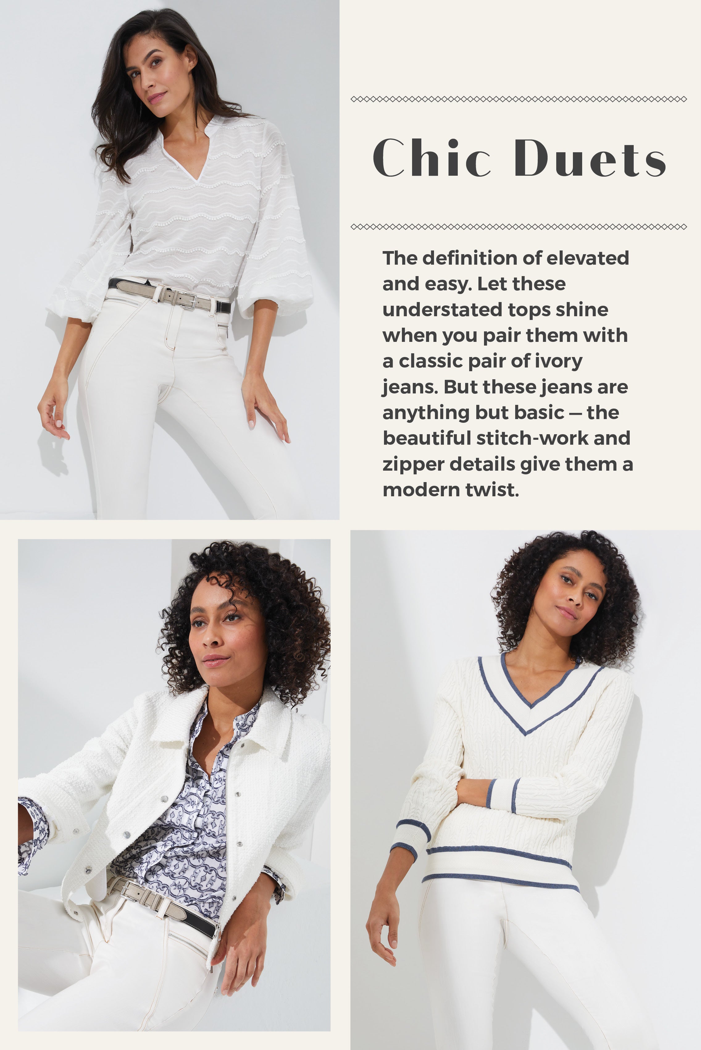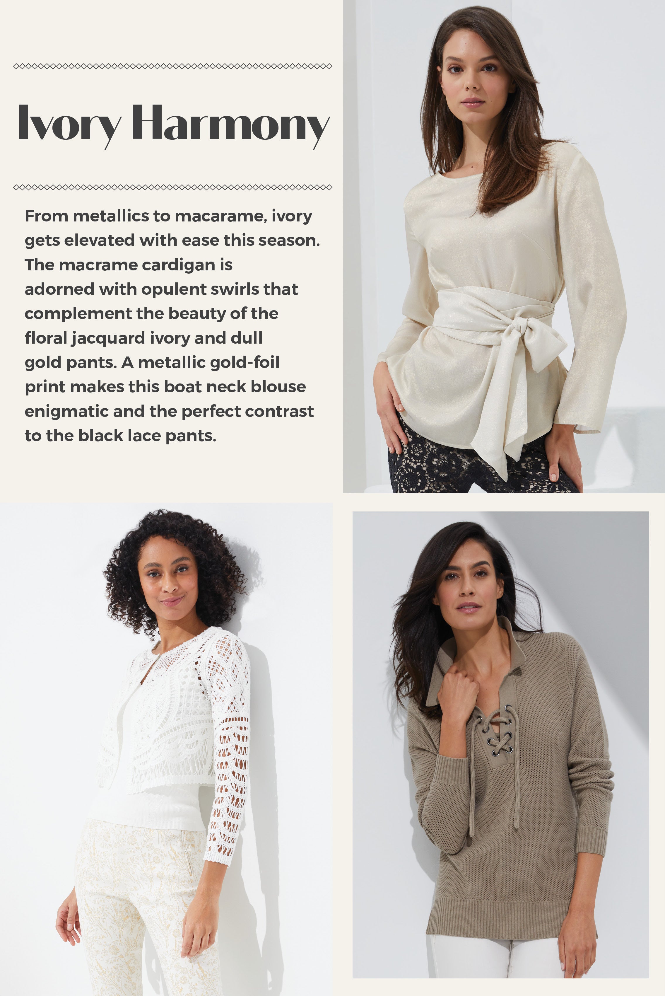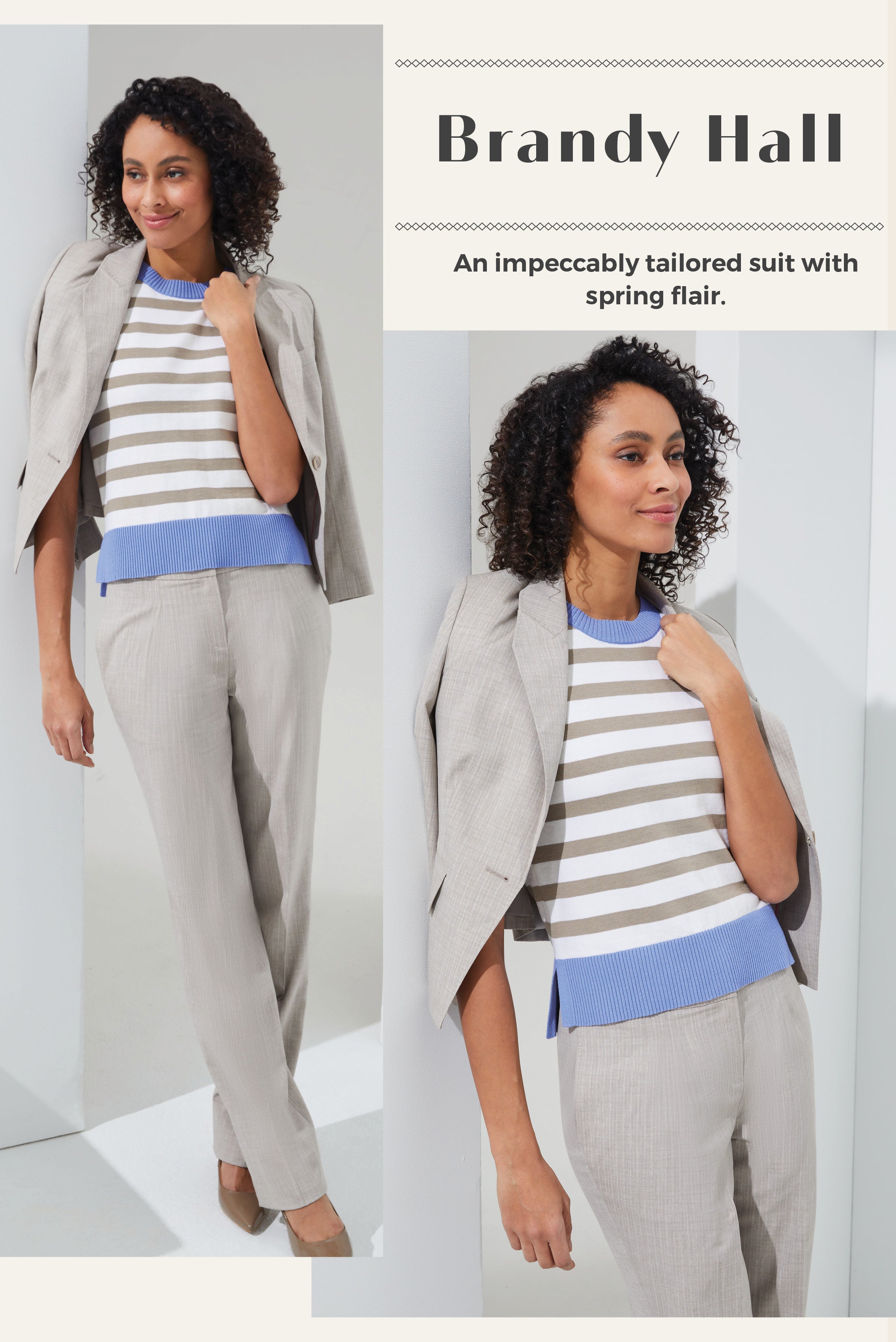 Picture Lizzie Bennett from the novel Pride and Prejudice becoming a shopping influencer for the likes of Kerrie Washington, Julia Roberts, Amy Schumer, and Zendaya, noted contemporary rom com queens. Their purchases would fall into the spring collection called The New Romantics, a line that marries timeless elegance with contemporary flair. These looks capture the essence of the classic femininity featured in both traditional and modern romance novels, while embracing the diversity and individuality of strong contemporary women. These pieces are a harmonious blend of styles, ranging from delicate floral prints that trigger memories of English gardens, to bold stripes that exude confidence and modernity. Lace-like knits add a touch of vintage charm, while luxe jacquards bring opulence to everyday wear. Each garment is designed to reflect the distinct personalities and preferences of these influential cinematic women, offering a wide range of choices for the modern tastemaker. Reflecting everything from Kerry Washington's chic sophistication to Drew Barrymore’s playful humor, this collection has something for everyone. In addition to its ethos of romance it's a celebration of individuality, style, and the power of self-expression. It invites wearers to channel their inspiring spirit, combining the grace of the past with the confidence of the present.