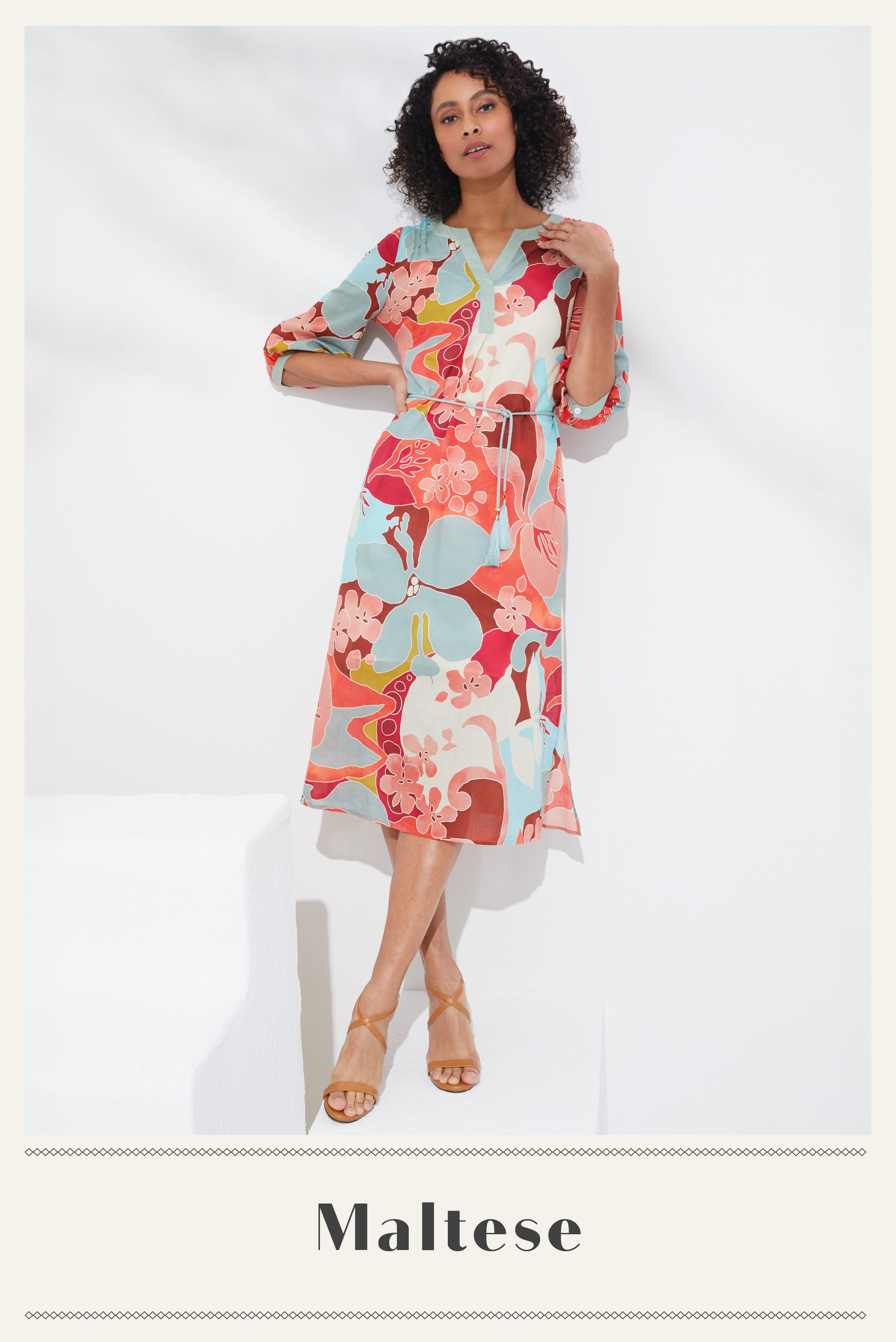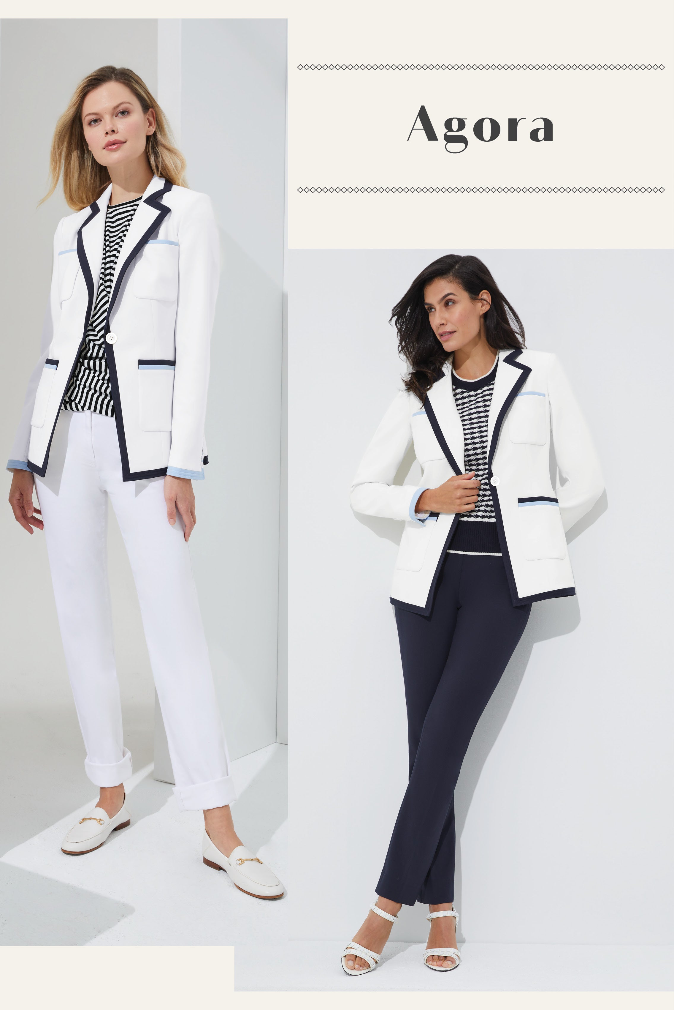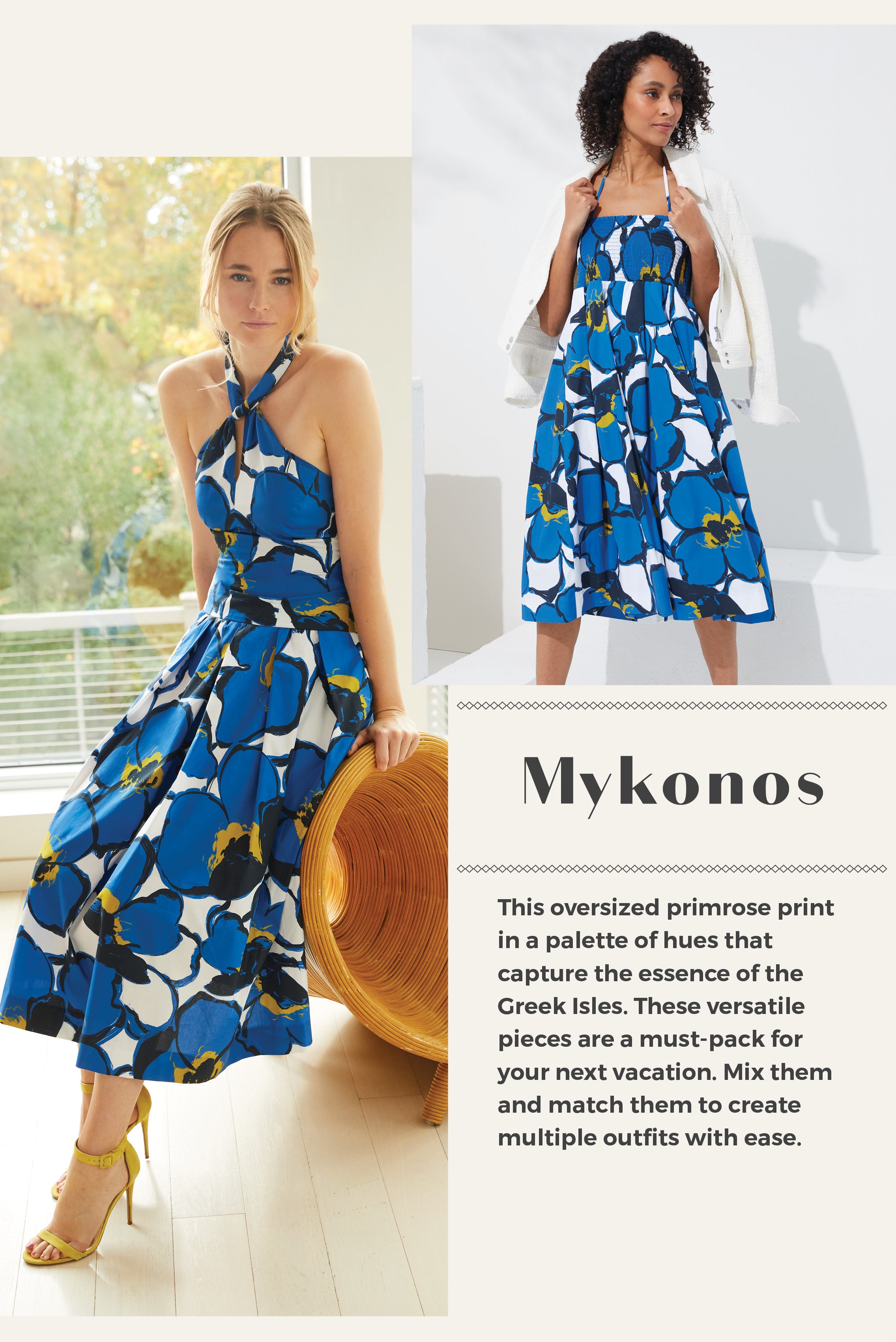 The countless beauties of the Greek isles inspire a spring line that is an embodiment of the mystique, allure, and rich cultural tapestry of this Aegean destination. Inspired by the commanding presence of classical deities, the allure of the muses, and enchanting local flora, this collection transports wearers to the sun-drenched shores and myth-laden landscapes of Greece. These looks seamlessly weave elements of the ancient and modern worlds together. Laser-cut leather pieces offer a contemporary edge, while patterned tweed pays homage to traditional craftsmanship. Stripes, floral patterns, tile prints, and deceptively simple silhouettes reflect the evolution of Greek culture, from the grandeur of Mount Olympus to the warmth and humor of Mama Mia. Each garment captures the essence of Greece's authoritative beauty, much like the iconic landmarks that dot its islands. The energizing colors mirror the vibrant hues of the Mediterranean, while stark, timeless patterns echo the enduring legacy of Hellenic art and architecture. This inspiring collection is a harmonious blend of history and modernity, inviting wearers to embrace the spirit of this legendary land and premium travel destination. It's an ode to the multifaceted nature of a place where mythology, tradition, and contemporary life converge in a festival of culture and beauty.