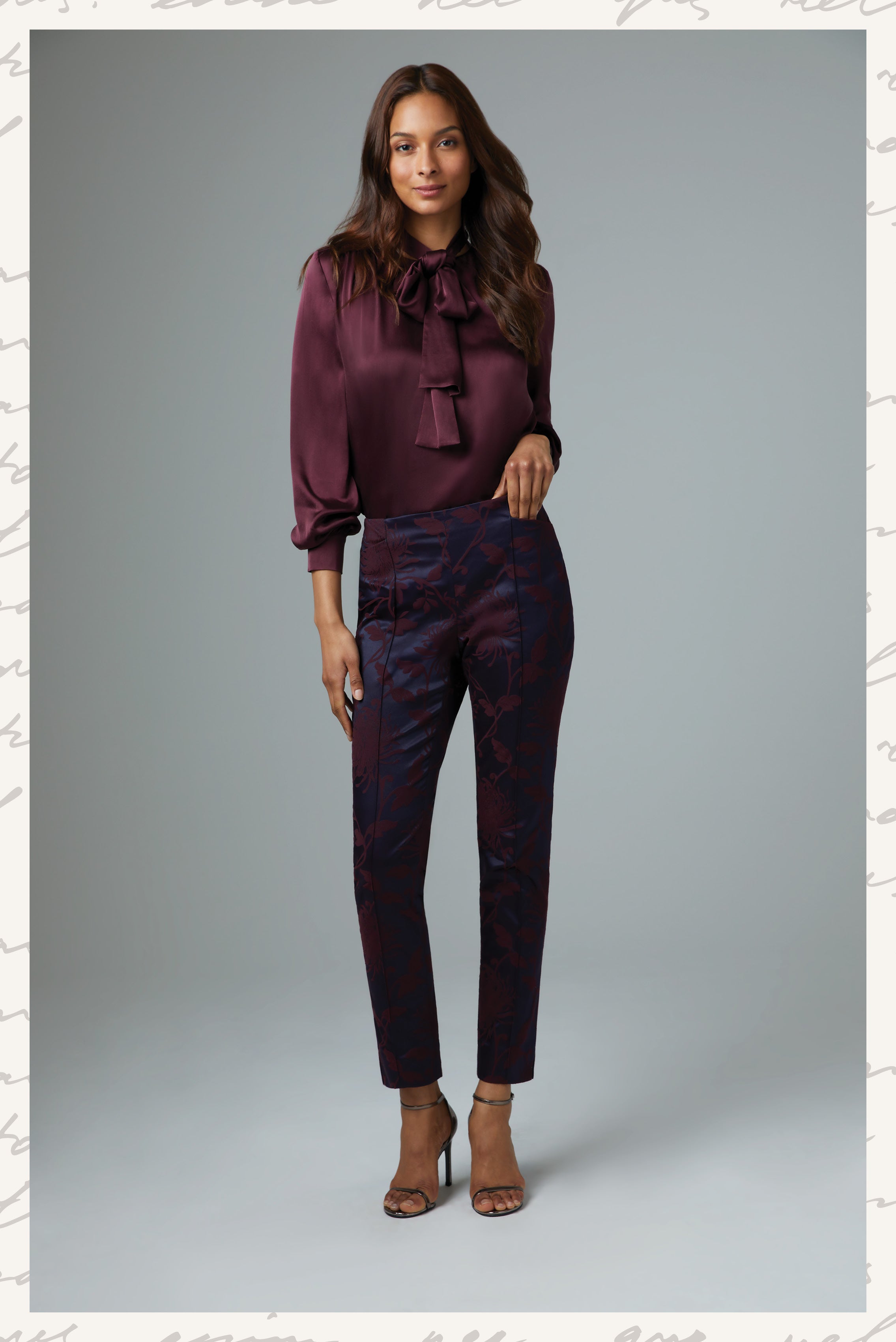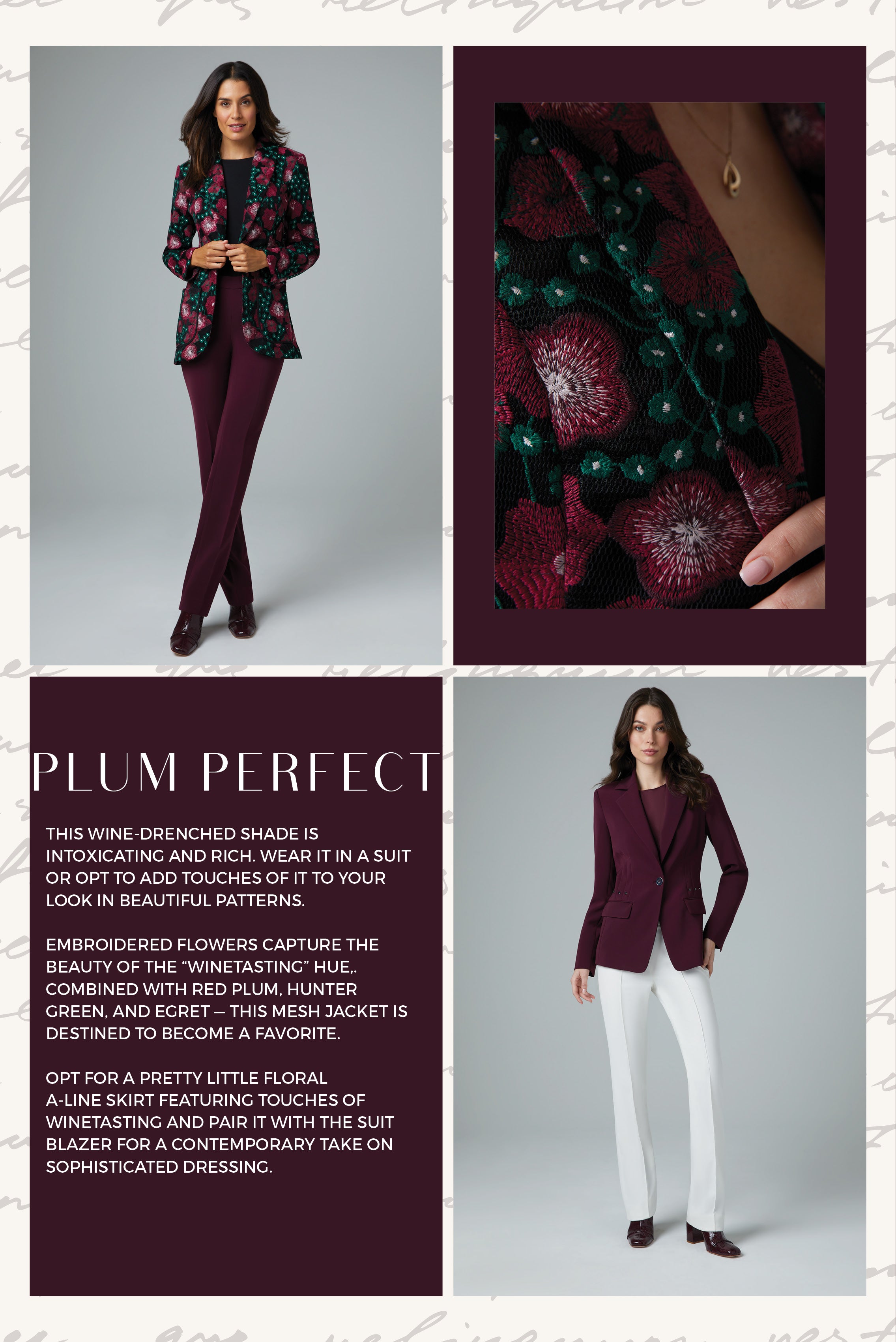 A WINE-DRENCHED SHADE OF REDDISH PURPLE TAKES CENTER STAGE THIS SEASON IN STATEMENT JACKETS, KNIT DRESSES, MODERN SUITING AND MORE.