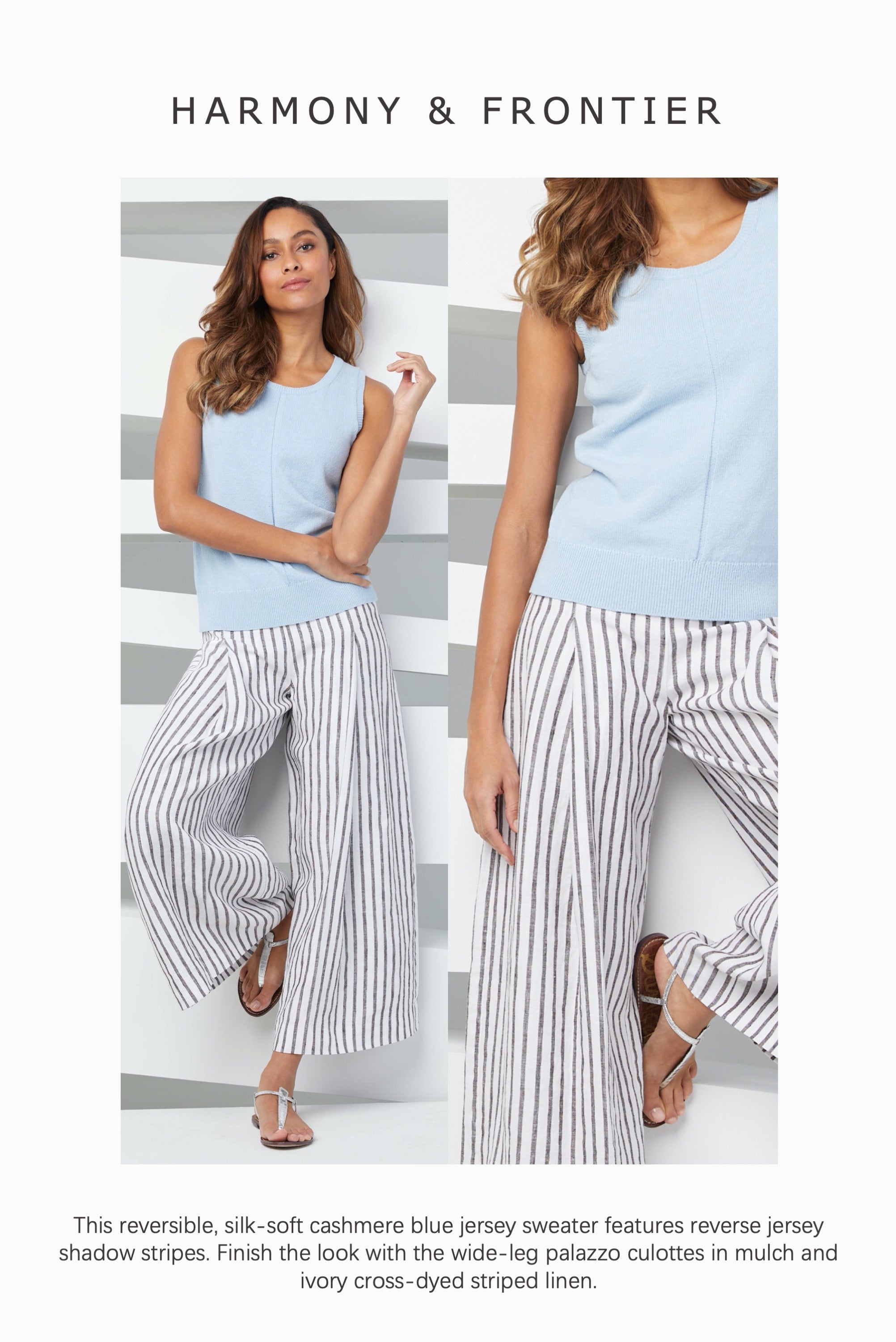 Summer E3 separates are a complete sartorial victory: everything mixes beautifully with ease, whether it’s a jungle floral print with a sharp, geometric chambray jacquard or a cross-dyed mulch stripe with a cashmere blue knit linen-blend shell. Pure white tulip pants and ultra wide-leg palazzo pants take the drama of fashionable volume to the streets with verve and comfort.