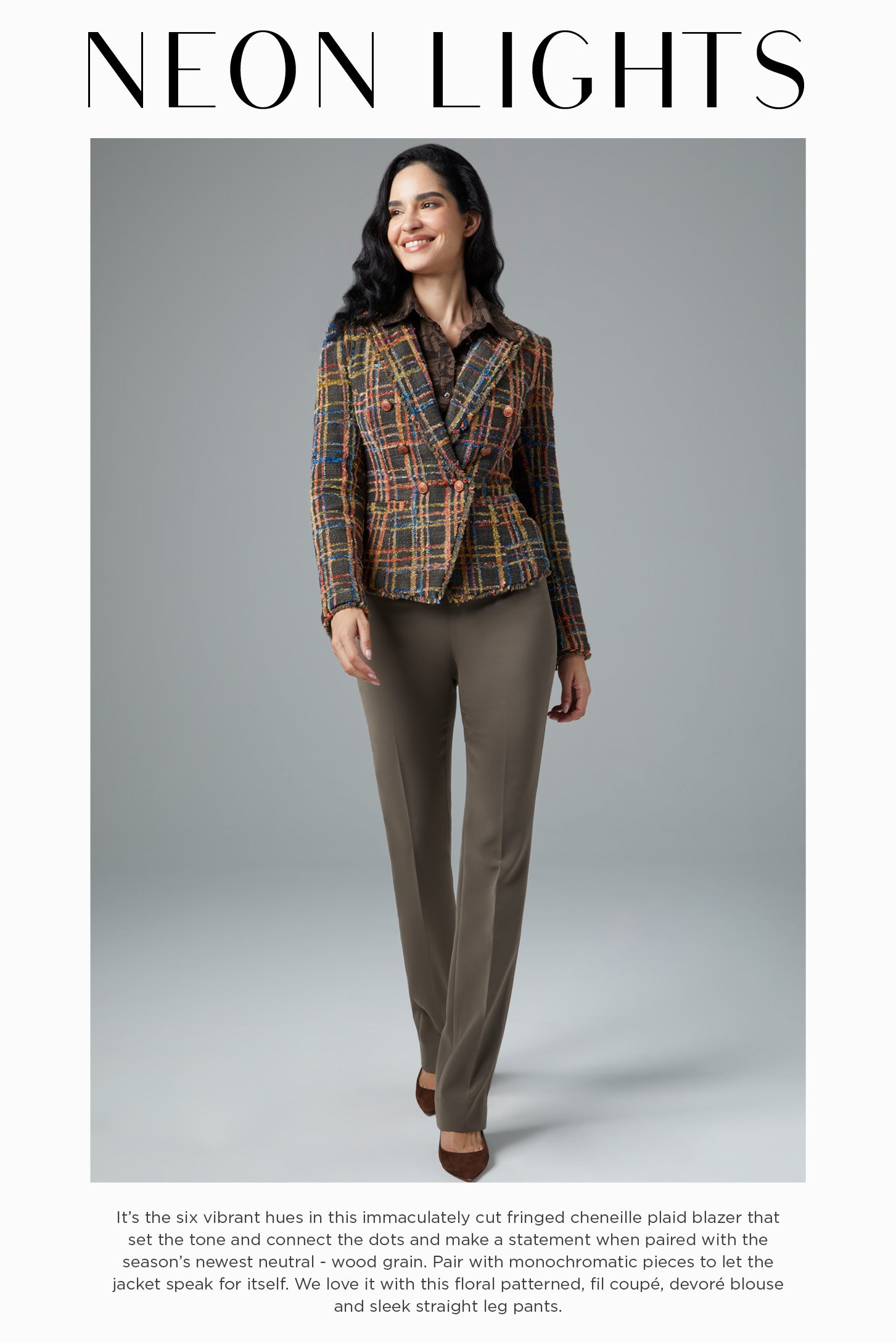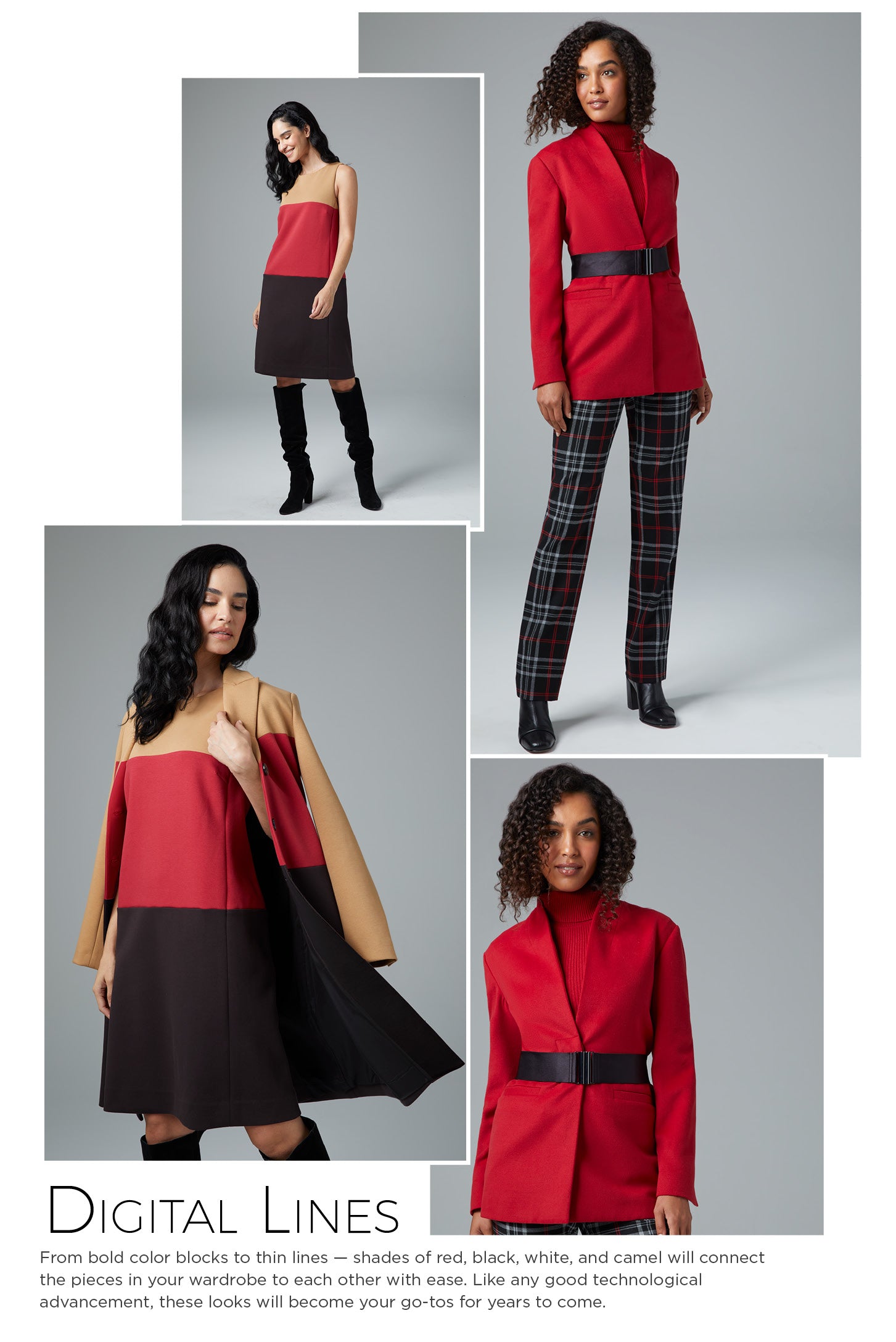 The winter Quantum Leap for Fashion line ushers in a new era of style, where cutting-edge technology meets luxurious design. This innovative collection draws inspiration from the realms of quantum computing, infusing futuristic elements into every garment. The looks are nothing short of groundbreaking, with prints, patterns, and tailoring that reflect the complexity and sophistication of A. I. The collection showcases plaids, reimagined with a modern twist that reflects the precision and intricacy of advanced algorithms. Sparkling fabrics have a brilliance that captures the essence of data streams. Savvy colorblocks are strategically proportioned to create a striking visual impact, alluding to the vibrant nature of quantum states. Floral fil coupé formal attire stands out as a testament to the fusion of traditional craftsmanship with futuristic production. Each piece is meticulously crafted, blending luxurious textures with cutting-edge aesthetics. The poster child for the line would be the Interstellar dress with its shattered stripes. The collection is not only about visual appeal but also about smart, wearable design. Comfort and functionality go hand in hand, ensuring that each piece is as practical as it is stylish.