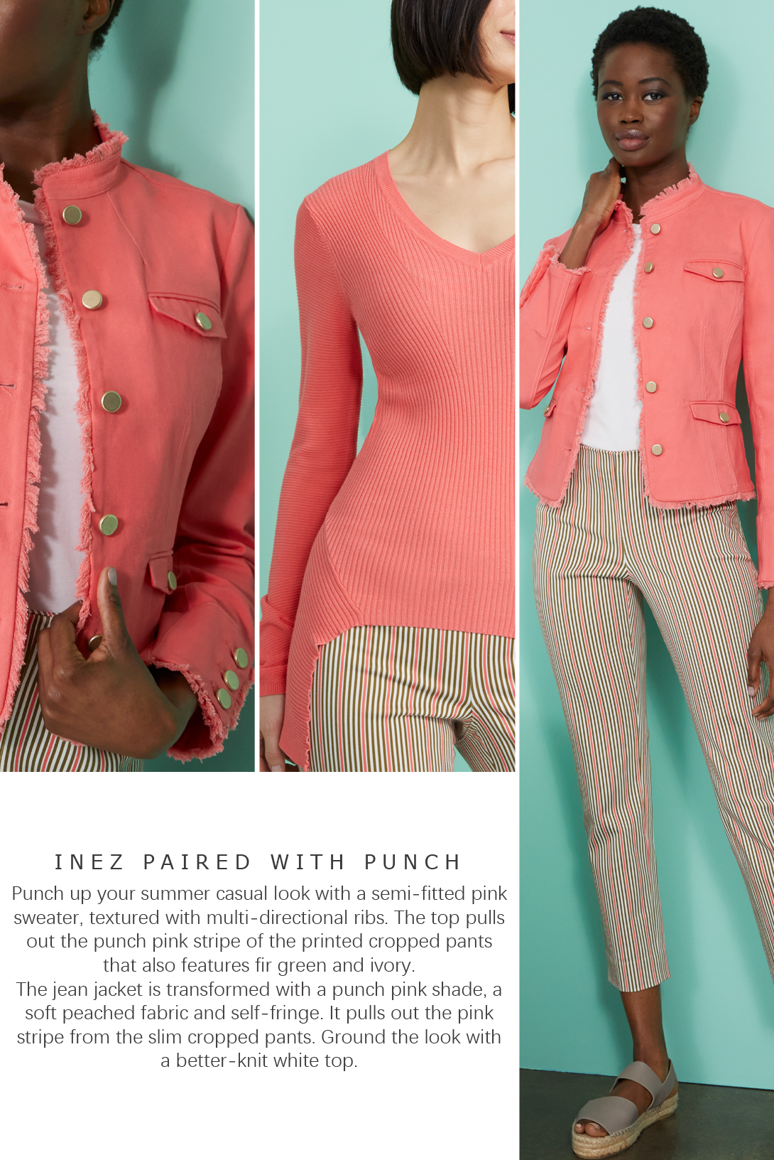 Saturated Bondi blue, a nearly red rosa pink and aqua-centric Amalfi green will energize your summer wardrobe. Stripes add spice to intarsia sweaters and fabulous statement blouses. Novelty prints include a seaside village dominated by ethereal butterflies, ditsy daisies, and chic tiger lilies.