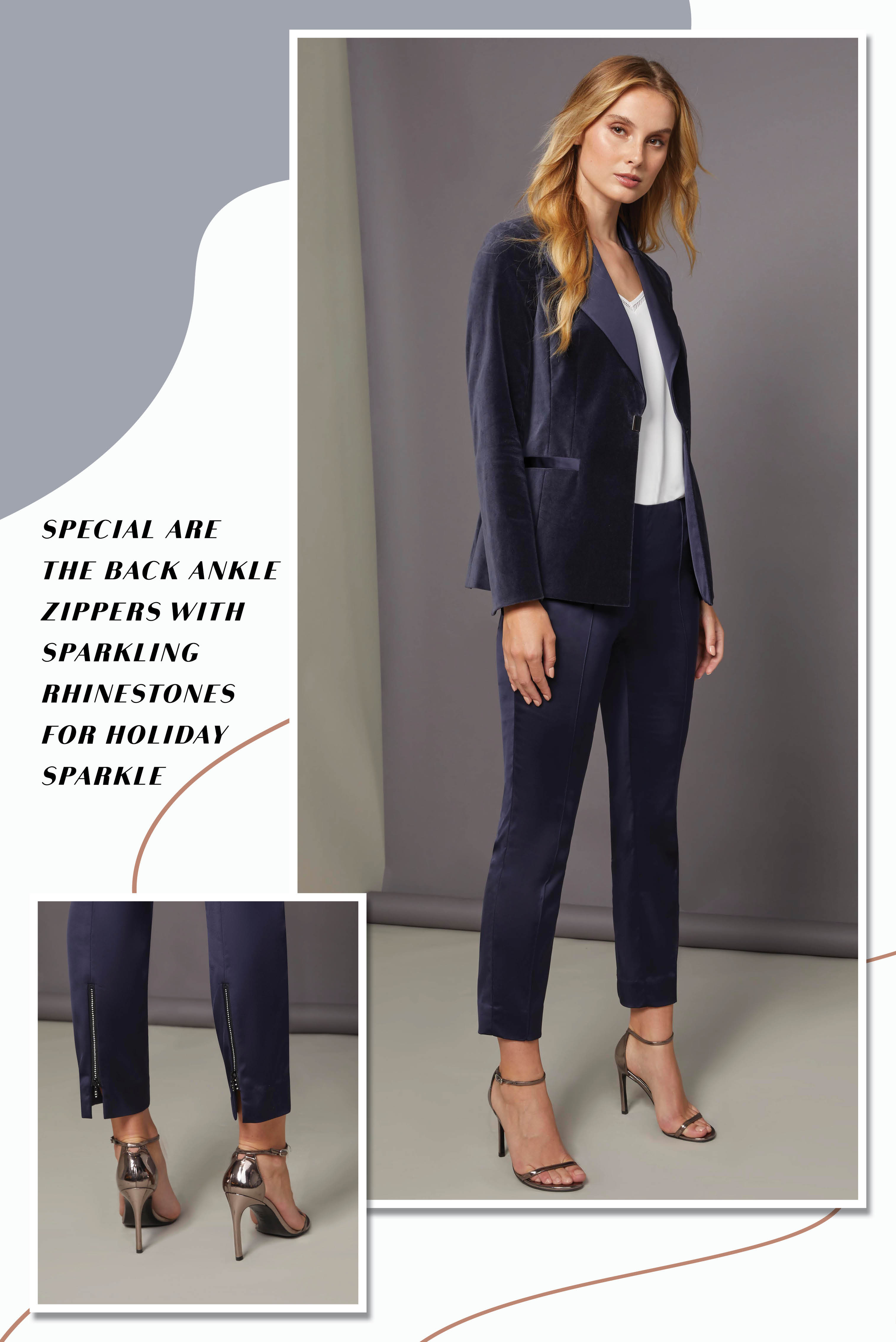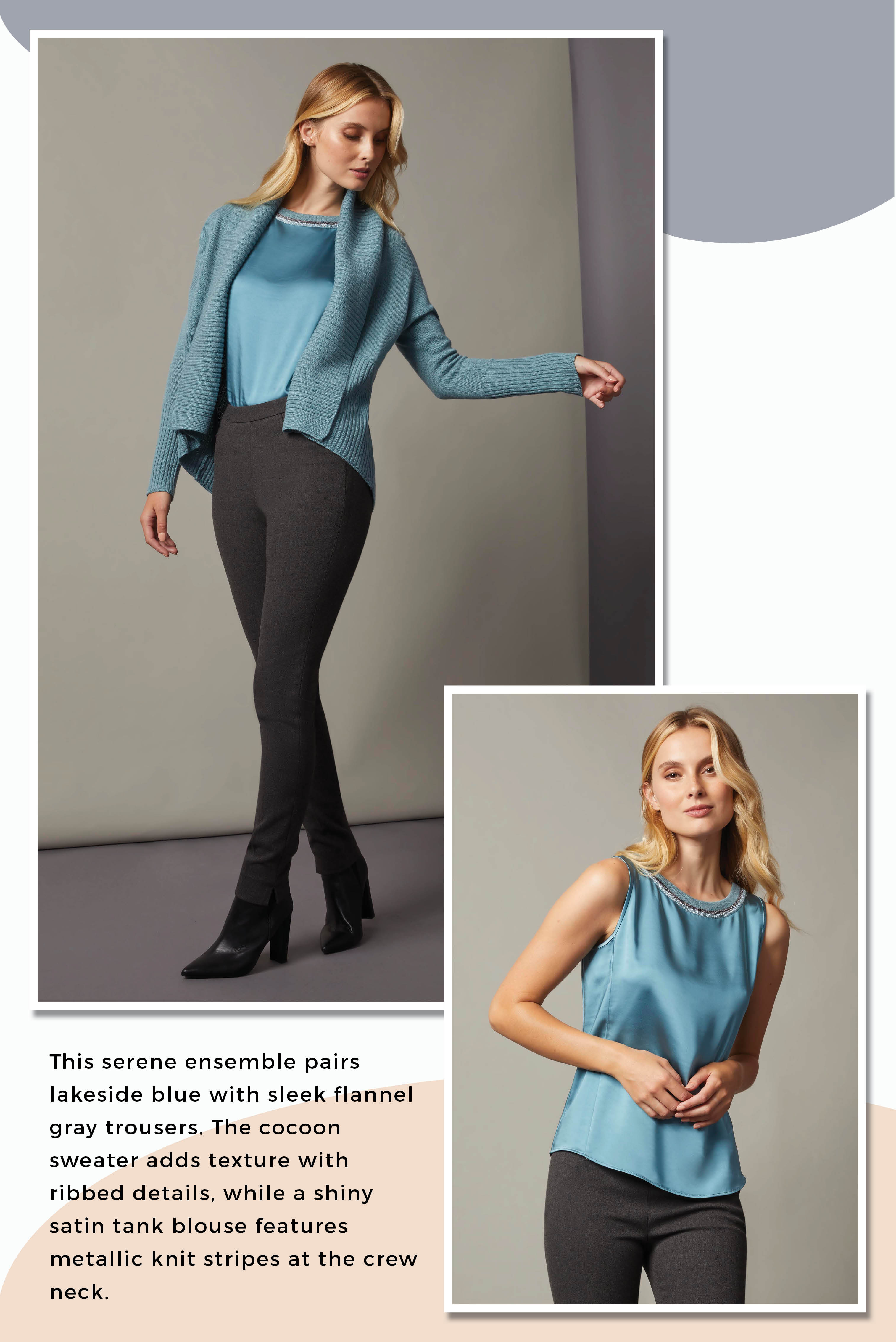 This collection pays homage to the irresistible charisma of these natural aquatic marvels with a refined color palette featuring glistening grays, ethereal blues, and delicate orchid shades. Each garment within the collection is meticulously crafted to capture the essence of lakeside grandeur.
